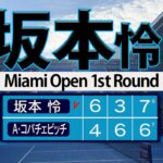 世界ランク164位、ワイルドカードで出場した坂本怜(19歳)は3月20日、マイアミ・オープン1回戦に臨み、世界92位のアレクサンダー・コバチェビッチ(27歳=アメリカ)と対戦。2度の雨中断を挟みながら2時間59分、6-4,3-6,7-6(7)のスコアで勝利した。